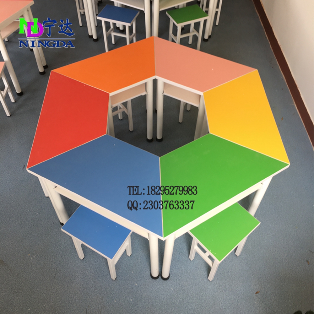 桌面材質(zhì):桌面采用7層(或7層以上)普通膠合板,表面用木紋貼面防火板或三聚氰胺板。課桌面板四個(gè)角適當(dāng)?shù)箞A角.