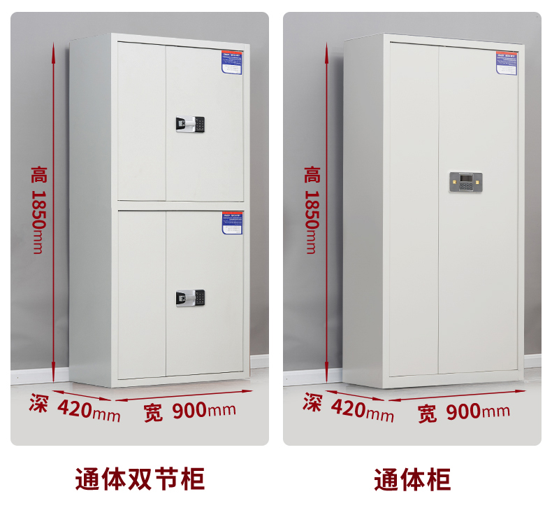 通雙節(jié)電子密碼保密柜1850mm*900mm*420mm四門、兩個抽屜、兩塊活動隔板;