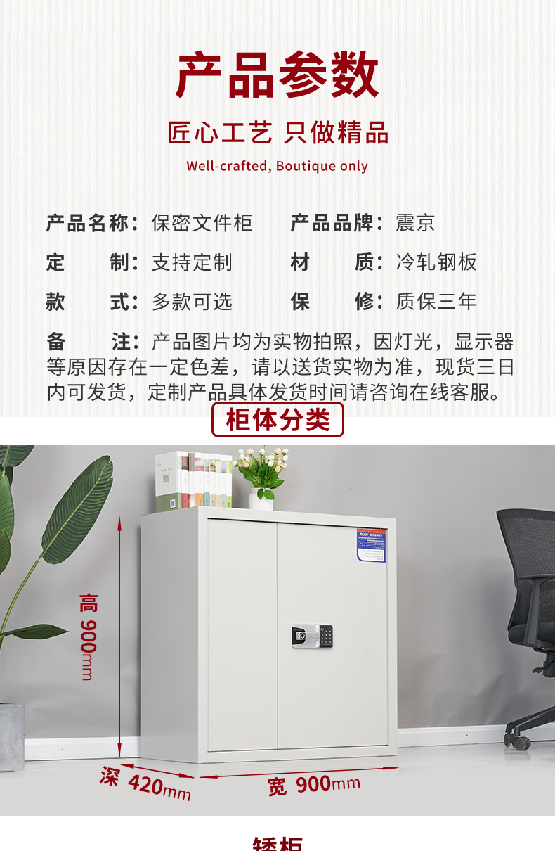 單節(jié)電子密碼保密柜910mm*900mm*420mm兩門、兩個抽屜、一塊活動隔板;